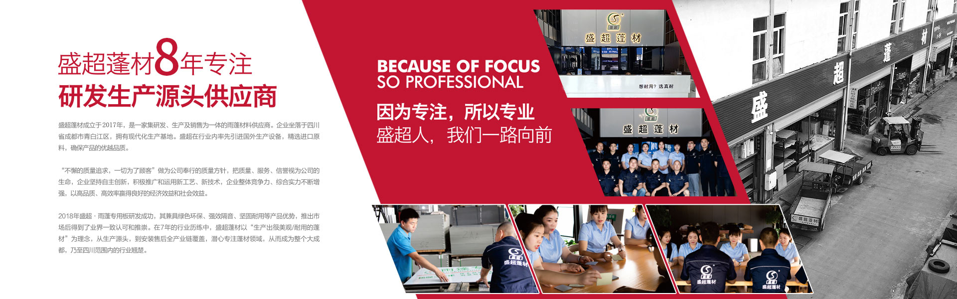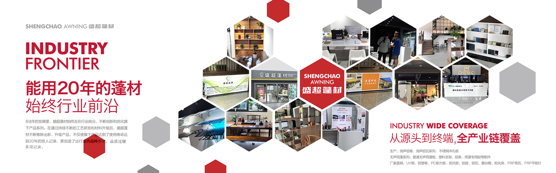 盛超蓬材是由四川超諾商貿(mào)有限公司創(chuàng)辦,是一家集研發(fā)、生產(chǎn)、銷(xiāo)售和服務(wù)于一體的專(zhuān)業(yè)雨蓬供應(yīng)商。主要產(chǎn)品:實(shí)心耐力板,中空陽(yáng)光板、多層板、蜂窩板、鋁瓦、消聲鋁瓦、不銹鋼消聲等材料的雨蓬產(chǎn)品。自主研發(fā)多款雨蓬,擁有自己的專(zhuān)利和檢測(cè)報(bào)告。其中明星產(chǎn)品新型組裝式雨蓬,擁有組裝簡(jiǎn)便,美觀(guān)耐用、抗噪音,性?xún)r(jià)比高等優(yōu)勢(shì),多項(xiàng)檢測(cè)指標(biāo)領(lǐng)跑同行業(yè)。受到了市場(chǎng)和經(jīng)銷(xiāo)商的高度認(rèn)可。 公司自成立至今,從銷(xiāo)售到研發(fā)再到生產(chǎn),已經(jīng)過(guò)了3次跨越式的發(fā)展。2017年已成為四川雨蓬行業(yè)內(nèi)庫(kù)房面積大,員工多的一家公司。產(chǎn)值每年以平均20%的速度快速增長(zhǎng)。可以說(shuō)客戶(hù)是我們的老師,和他們合作使我們得到很多的學(xué)習(xí)機(jī)會(huì)來(lái)提高自身的技術(shù)水平和管理水平,是我們生產(chǎn)和發(fā)展的動(dòng)力。